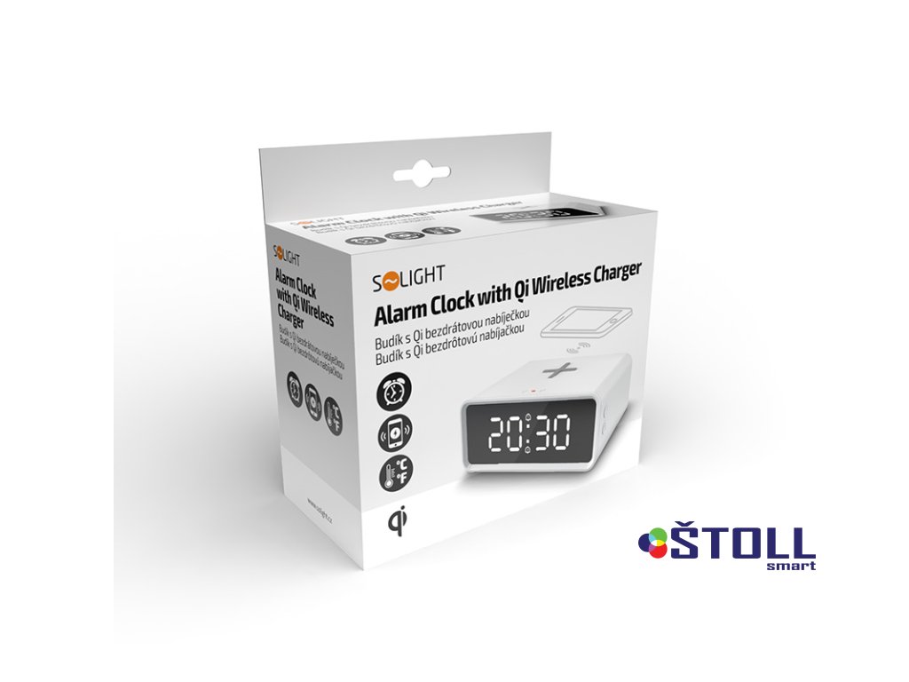 - budík s bezdrátovou nabíječkou kompatibilní se standardem Qi