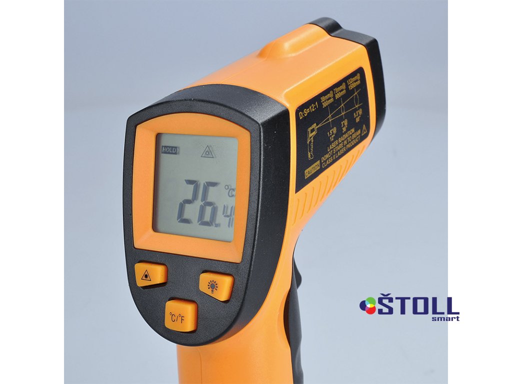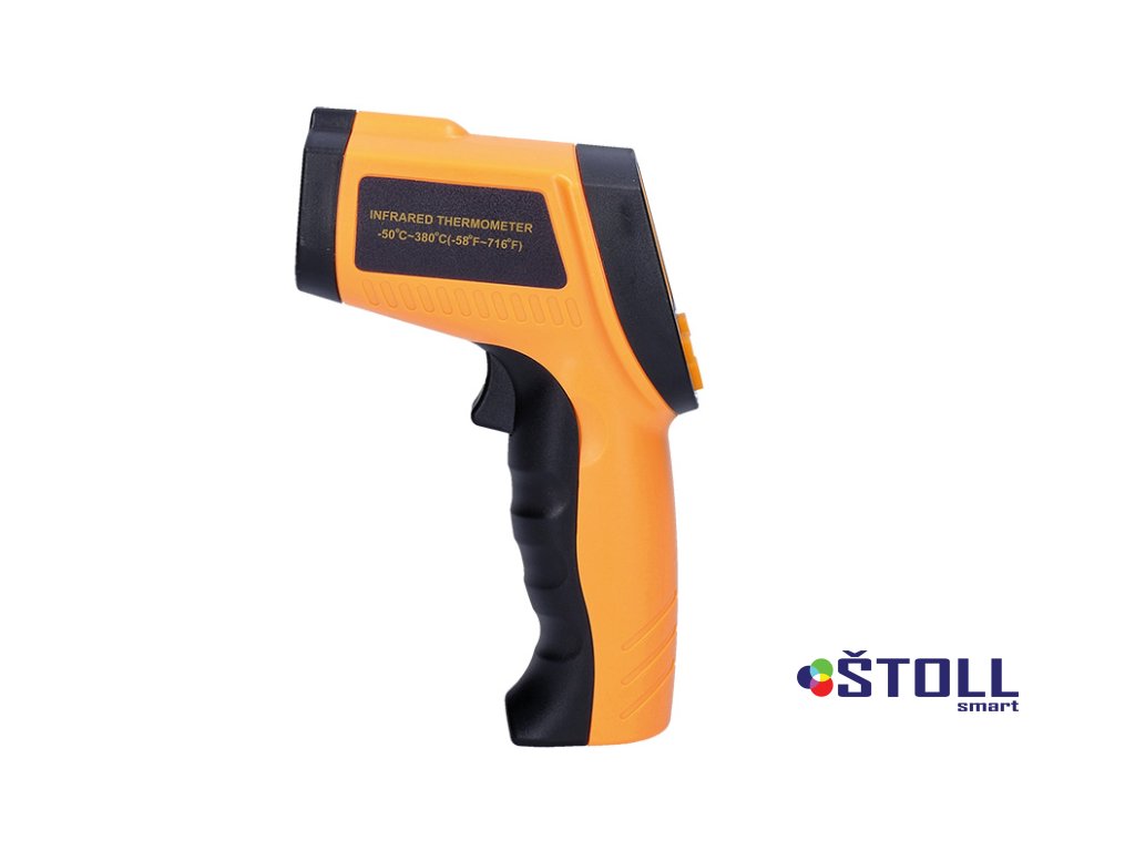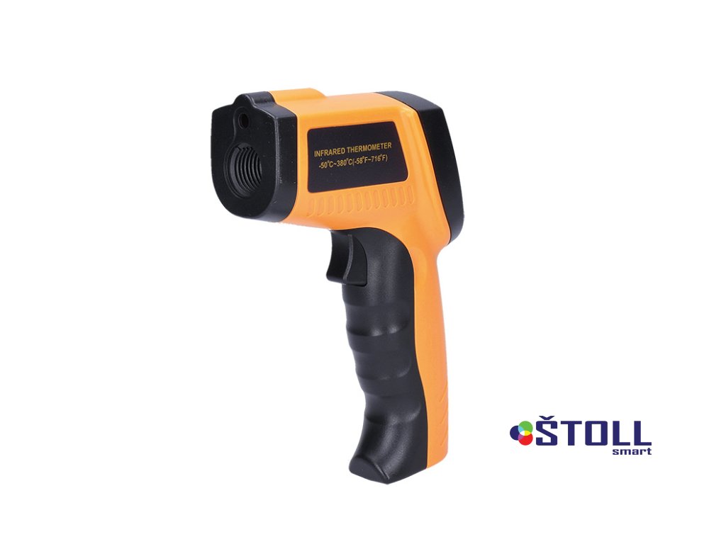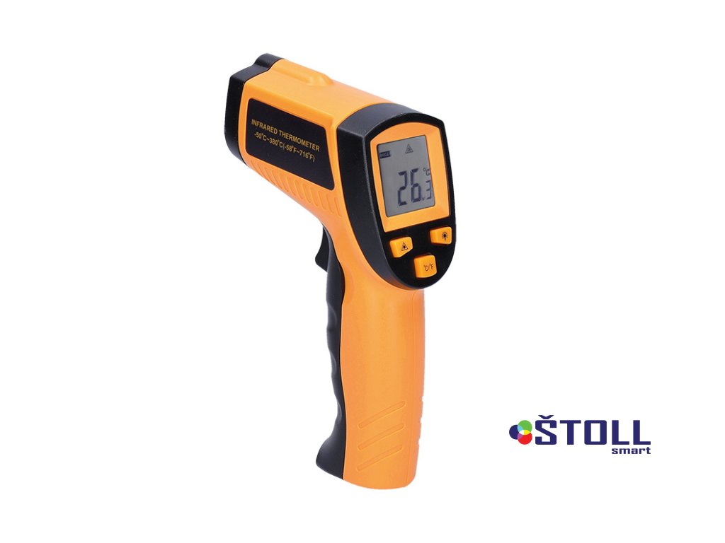 Infračervený teploměr pro měření teploty bez přímého kontaktu s měřeným předmětem. Rozsah měření teploty: -50°C až +380°C, s přesností +/- 1,5°C. Laserový zaměřovač a podsvícený displej pro snadné čtení výsledků, možnost přepnutí mezi °C/°F. Optický poměr 12:1, vlnové spektrum 8-14 µm a doba měření 500ms. Paměť poslední hodnoty, automatické vypnutí po 8s bez aktivity a indikace vybité baterie. Napájení: 9V baterie (součástí balení). Ideální pro rychlé a přesné měření teploty.