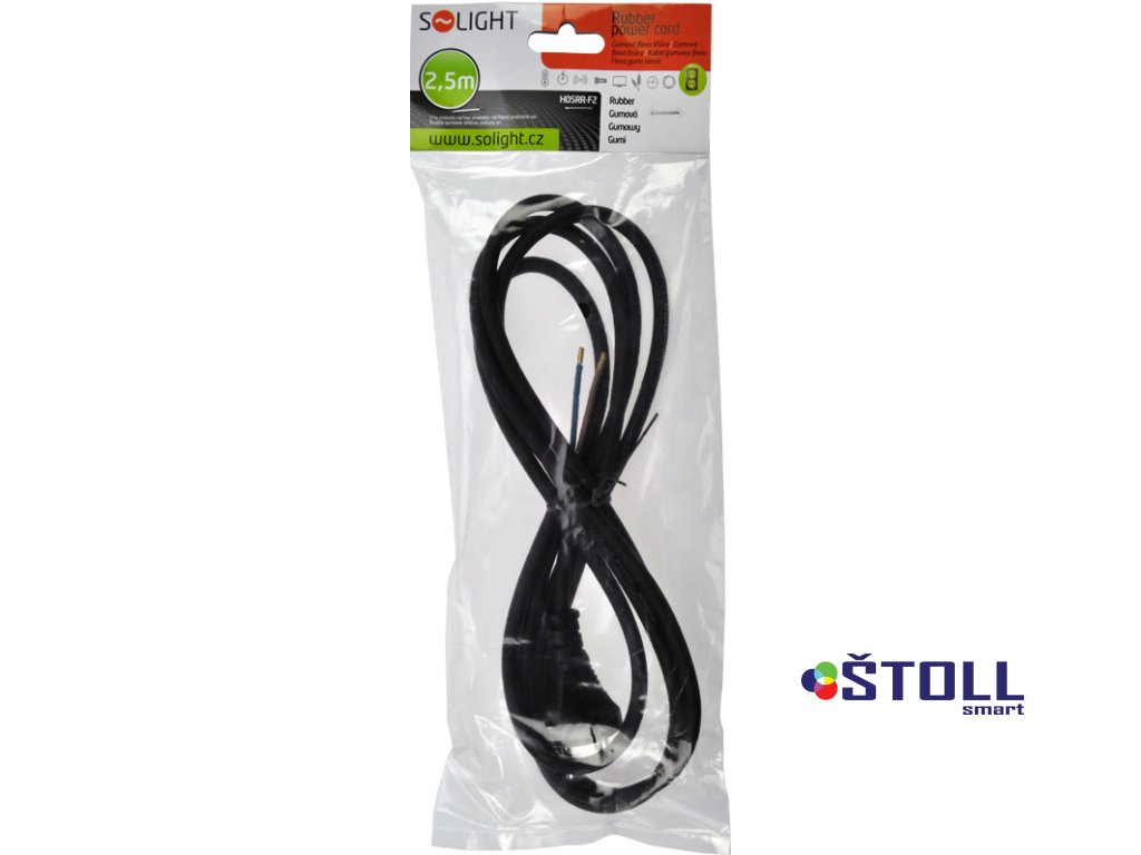 Přívodní gumový kabel s volnými vodiči umožňuje připojení přímo do spotřebiče nebo k pohyblivé zásuvce. Vodiče jsou ze splétaných měděných drátků s měděnými krimpovanými koncovkami, usnadňující montáž do svorkovnice. Určeno pro venkovní i vnitřní použití, stupeň krytí IP44.