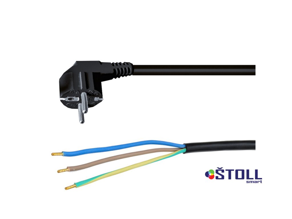 Přívodní PVC kabel s volnými vodiči umožňuje připojení přímo do spotřebiče nebo k pohyblivé zásuvce. Vodiče jsou ze splétaných měděných drátků s měděnými krimpovanými koncovkami, usnadňující montáž do svorkovnice. Určeno pro vnitřní použití, stupeň krytí IP20.