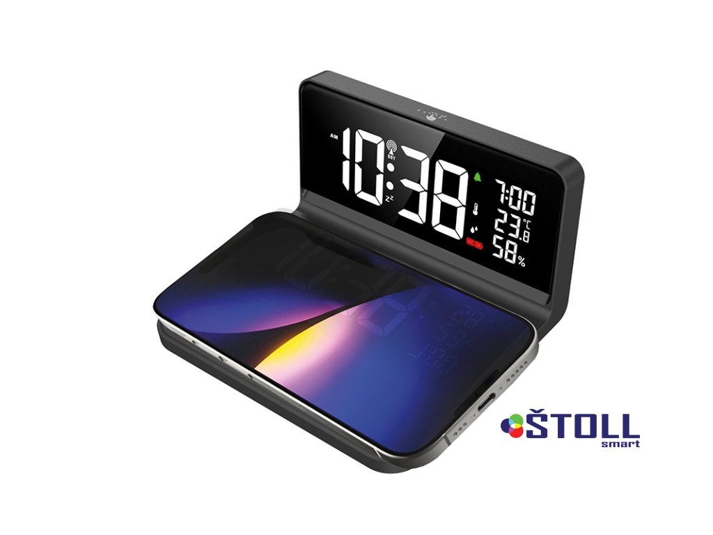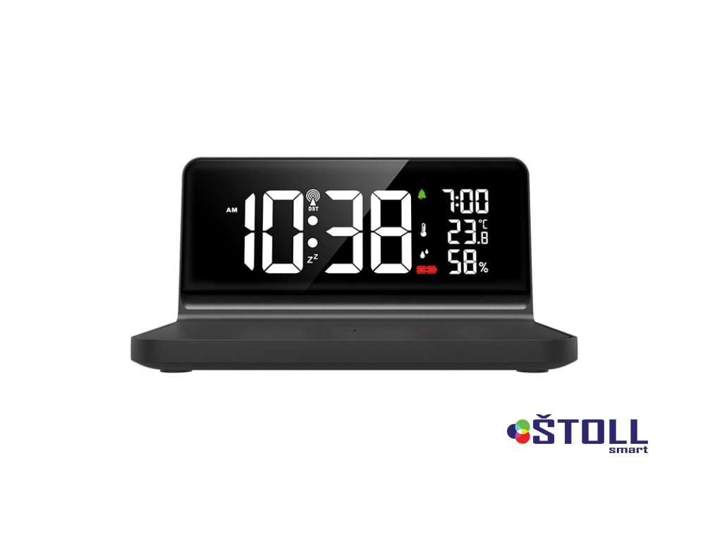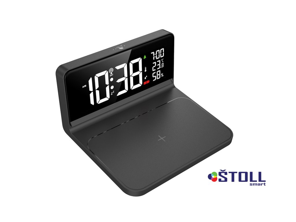 Budík a hodiny s bezdrátovým nabíjením – moderní multifunkční doplněk. Tento digitální budík kombinuje bezdrátovou nabíječku (Qi, max. 10W), hodiny, kalendář do roku 2099 a teploměr s měřením vlhkosti. Nabízí vysoké rozlišení LCD displeje, možnost zobrazení času ve formátu 12/24h, a denní i Po-Pá budík s funkcí opakovaného buzení. Měří teplotu (-9,9°C až +50°C) a vlhkost (20–95%). Pro rychlé nabíjení je nutný standard QC 3.0.