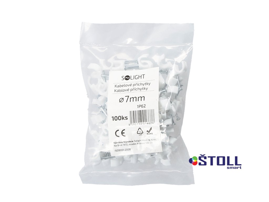 Solight kabelové příchytky, průměr 7mm, bílé, 100ks