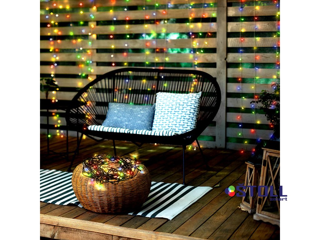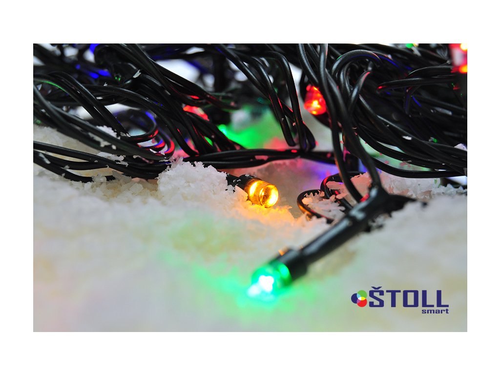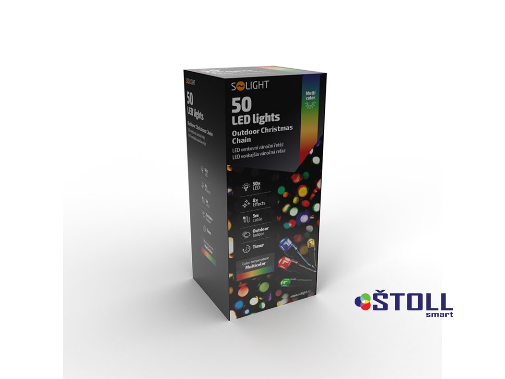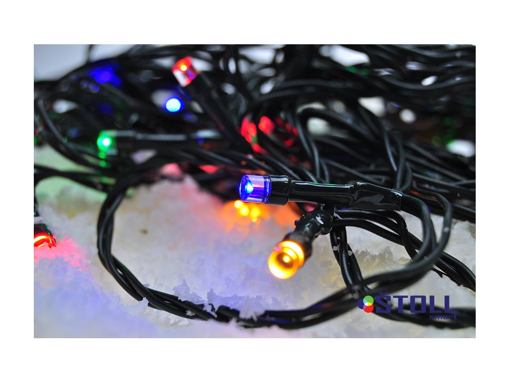 LED venkovní vánoční řetěz, 50 LED, 5m, přívod 3m, 8 funkcí, časovač, IP44, vícebarevný