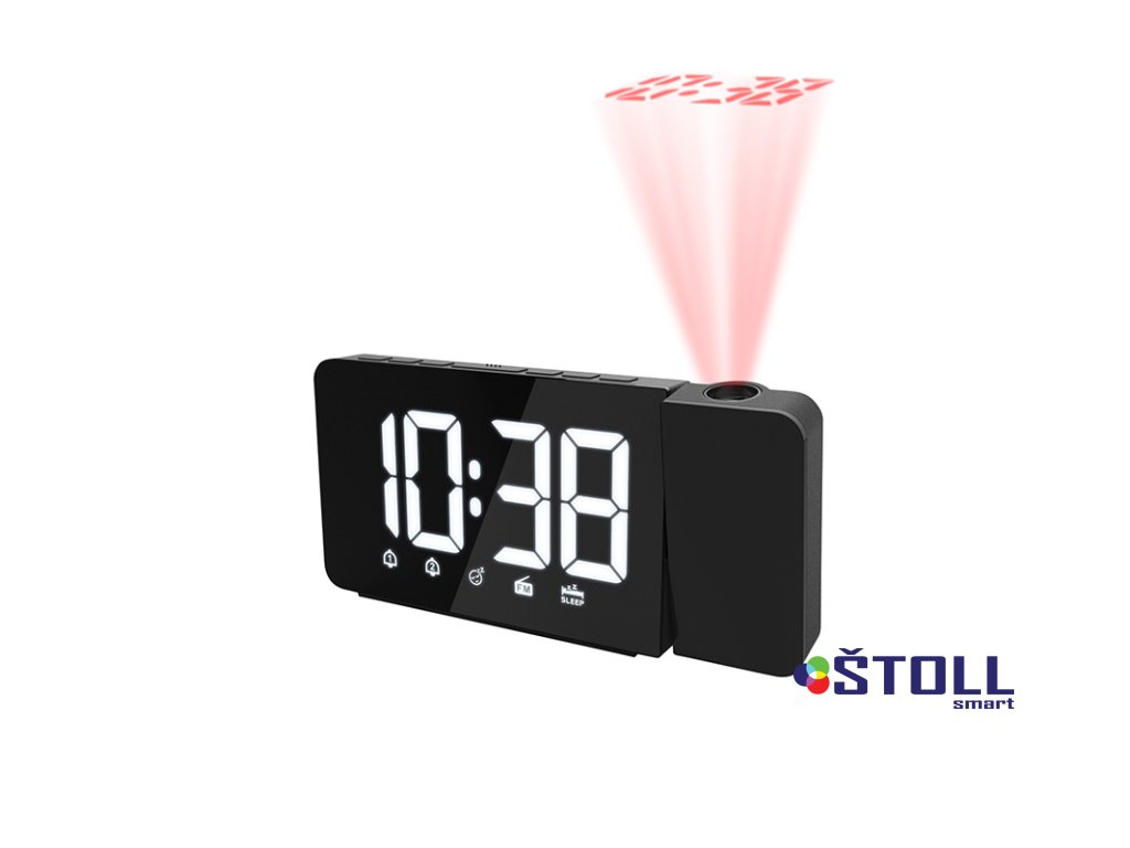 Tento budík s projekcí času na zeď nabízí velký LED displej s nastavitelnou intenzitou podsvícení a možností otáčení projektoru v rozsahu 0–180°. Umožňuje buzení rádiem nebo alarmem, má FM rádio s automatickým laděním stanic a funkci odloženého buzení (0–60 min). Díky třem úrovním projekce (vysoká, nízká, vypnuto) si přizpůsobíte zobrazení podle svých potřeb. Napájení DC5V (adaptér součástí) a záložní baterie CR2032 pro uchování nastavení.