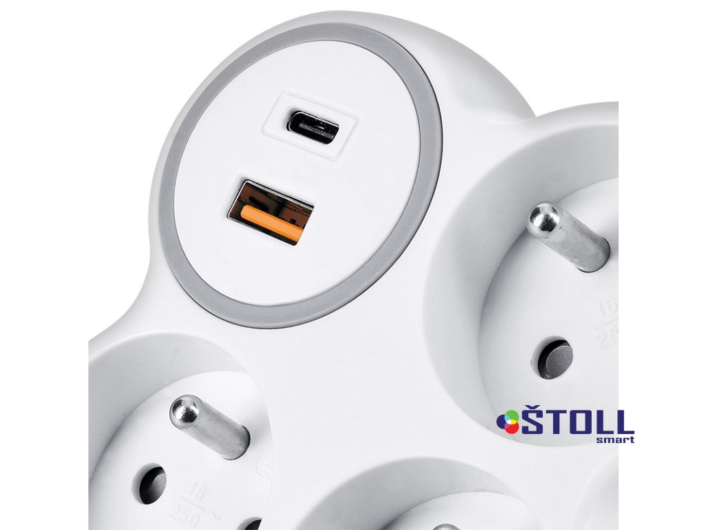 Tato praktická rozbočka s integrovanou USB nabíječkou je ideální řešení pro domácnosti, kde potřebujete připojit více zařízení na jednom místě – například televizi, set-top box, router a k tomu nabíjet telefony nebo tablety. USB-A a USB-C porty nabíjí i dvě zařízení současně. Power Delivery (PD) technologie výrazně zkracuje dobu, po kterou musí být přístroj v nabíječce. Perfektní pro veškerou USB elektroniku a váš čas.