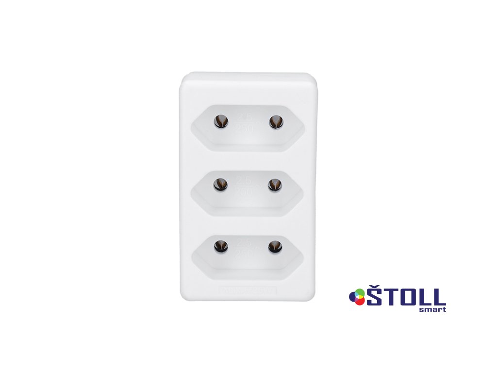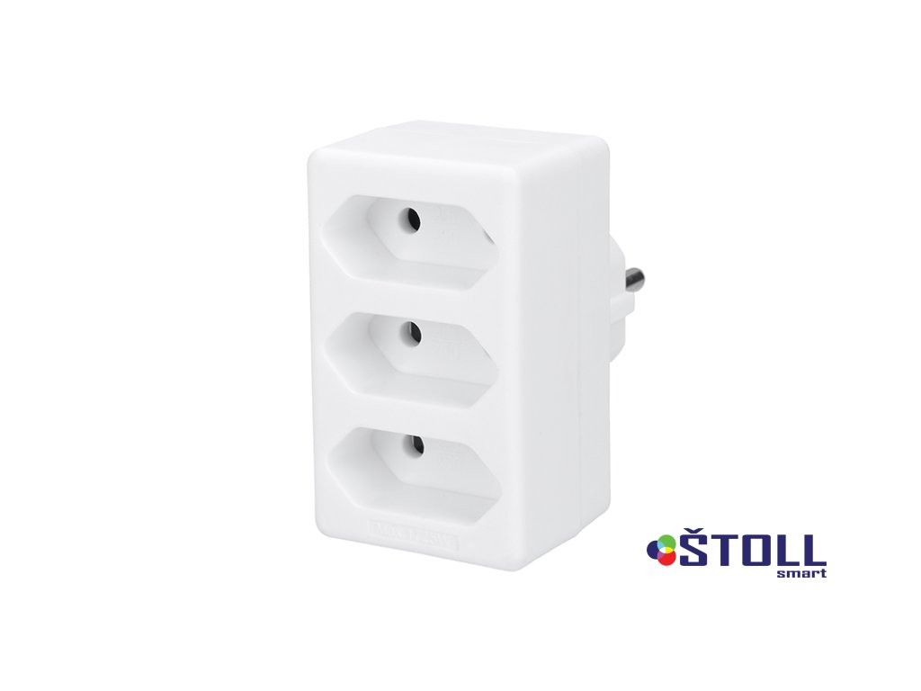 Tato jednoduchá rozbočka slouží k zapojení až tří neuzemněných spotřebičů s přívodními šňůrami s plochou vidlicí. Lampička, set-top-box, router, apod.