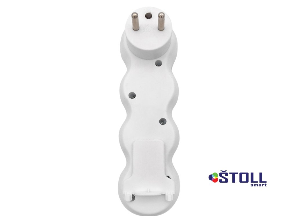 Unikátní výklopná podpěra umožňuje podepřít rozbočku proti zdi, stolu nebo podlaze ve dvou vzdálenostech. Díky tomu rozbočka drží stabilně v jakékoli poloze. Je vhodná i pro těžší adaptéry nebo nabíječky, které by běžnou rozbočku vyklápěly ze zdi nebo překlápěly prodlužovací přívod.