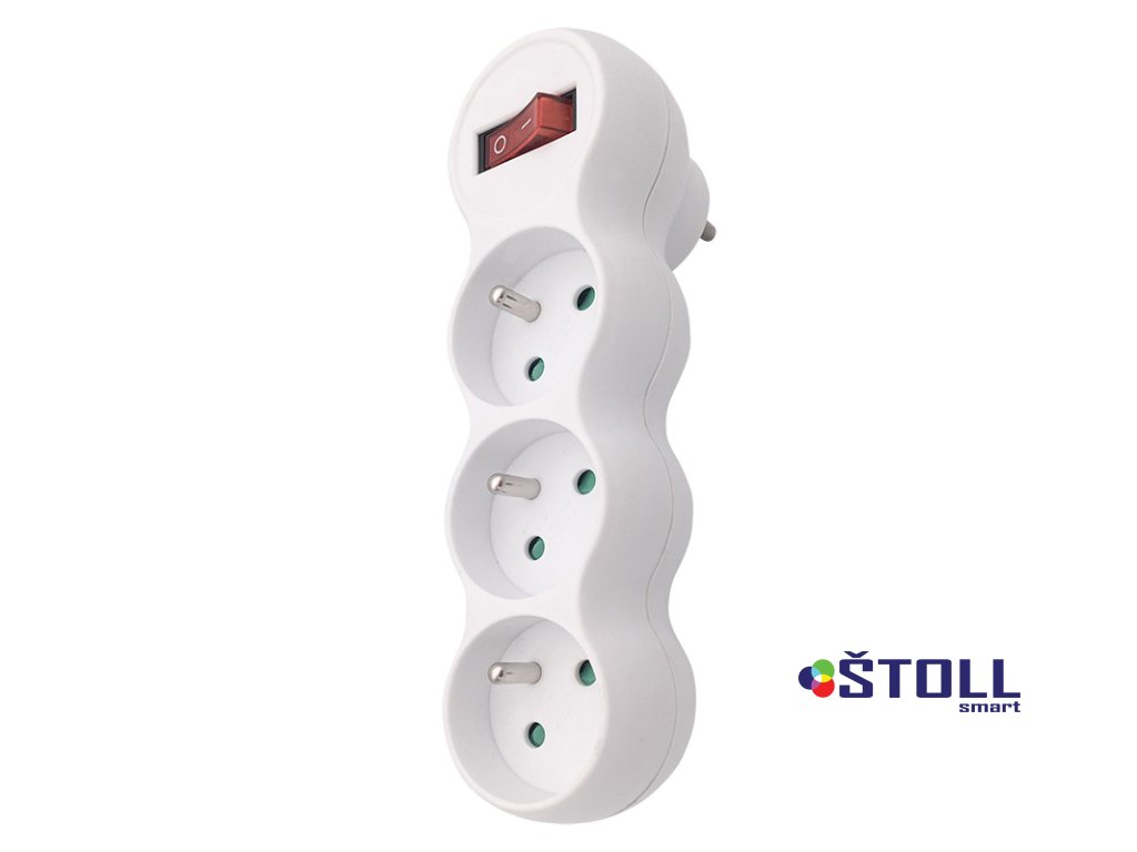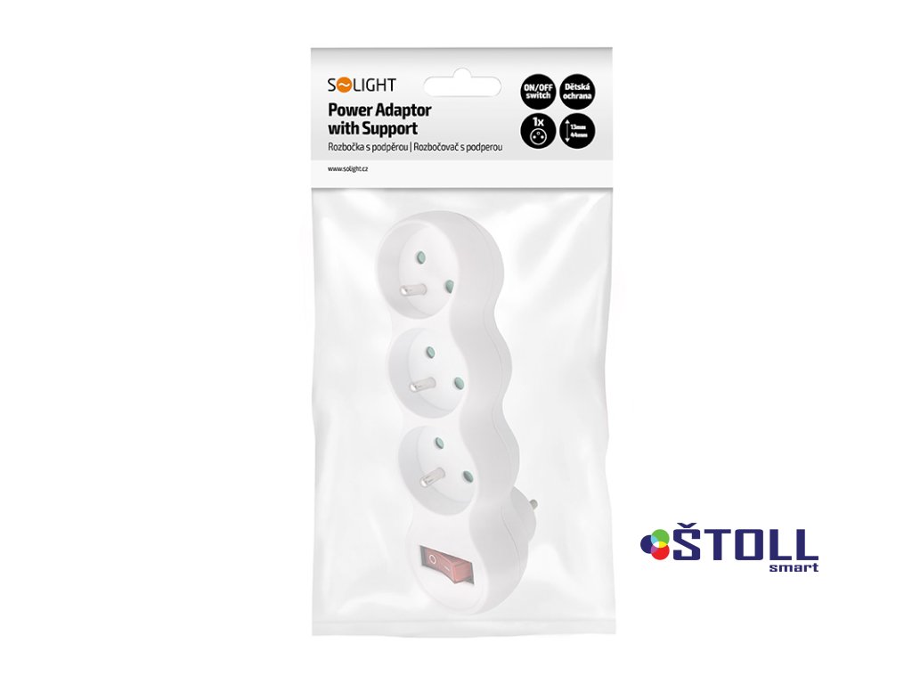Solight rozbočka s podpěrou, 3 x 10A, bílá, vypínač