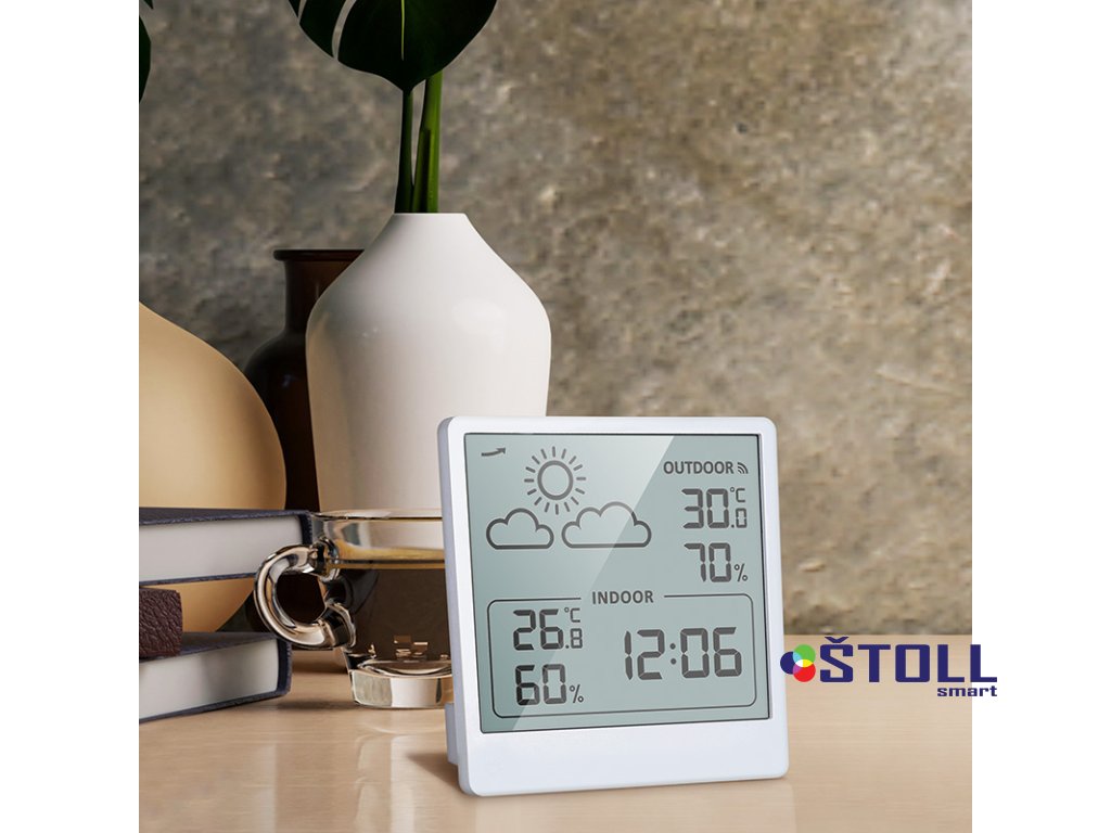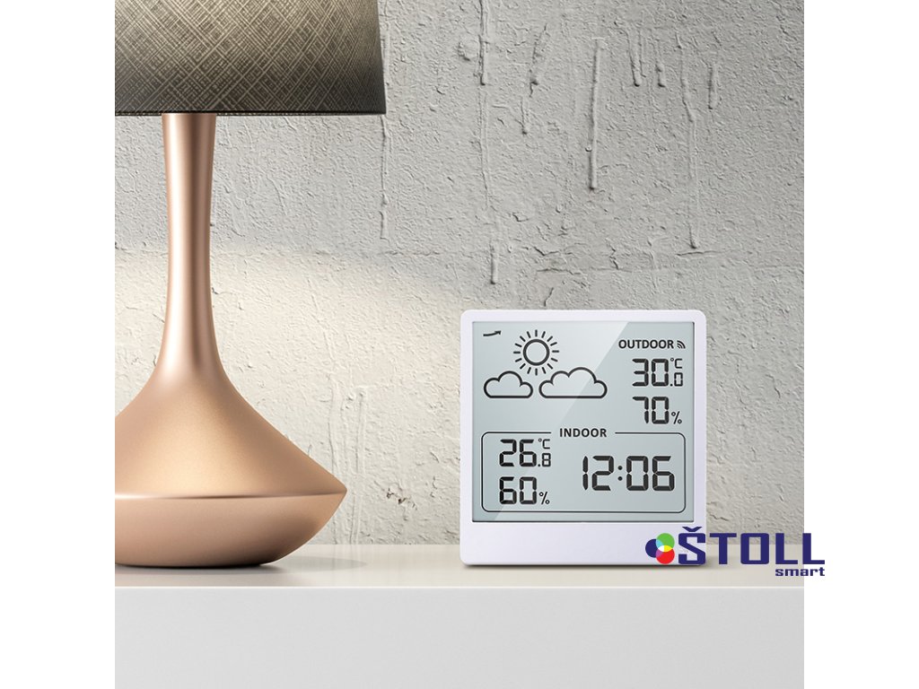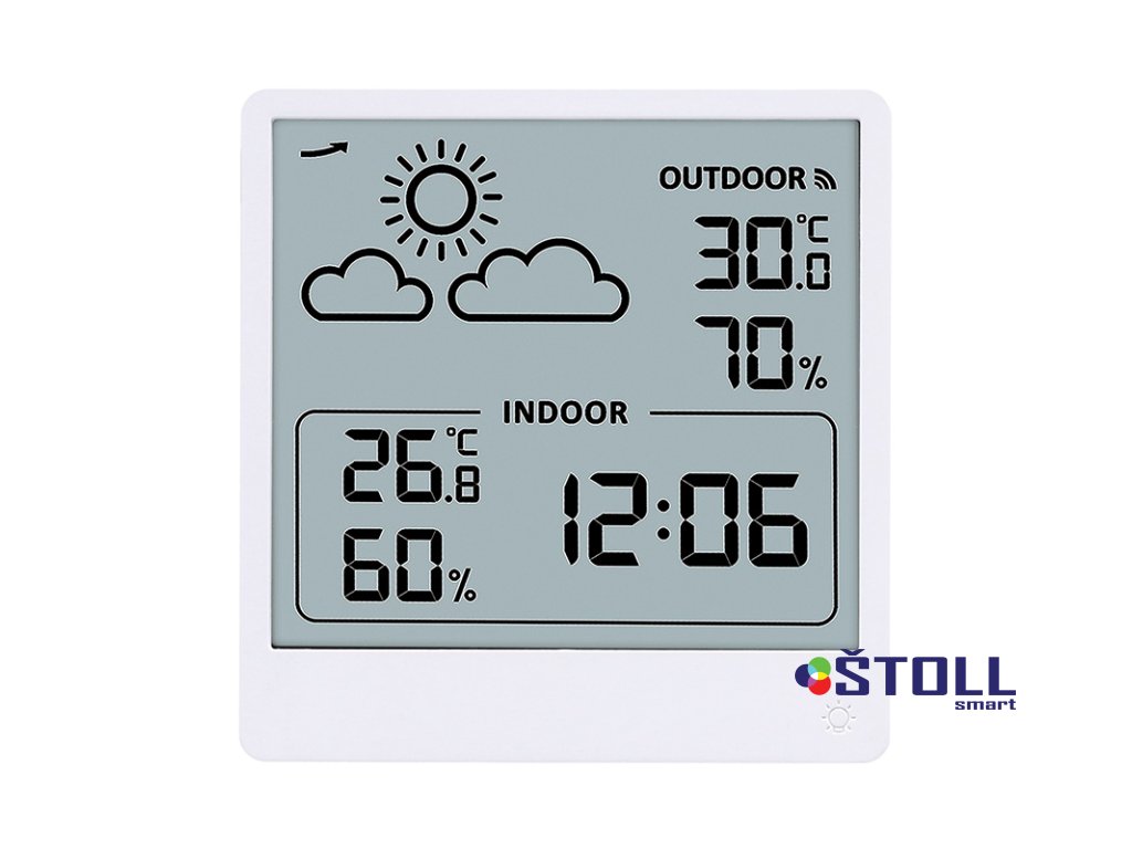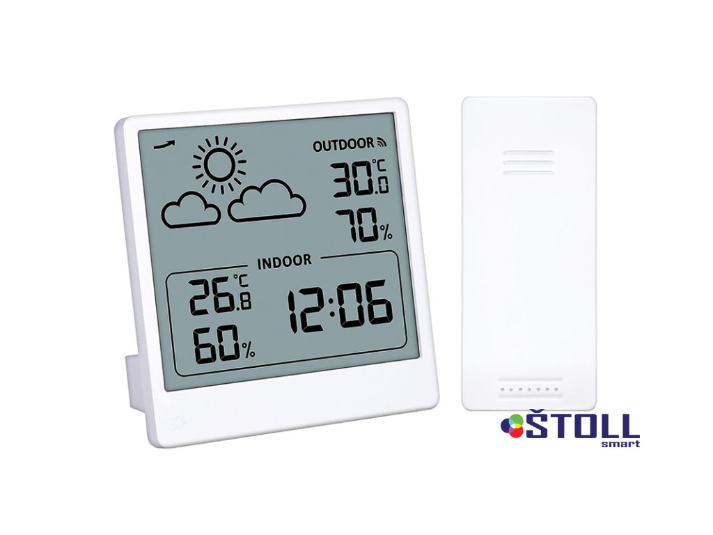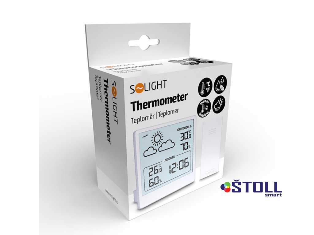 Měření vnitřní teploty od -9,9°C do +50°C a venkovní teploty od -40°C do +70°C. Měření vlhkosti (20% až 95%) pro vnitřní i venkovní prostředí. Ukládání maximálních a minimálních hodnot teploty a vlhkosti, zobrazení trendu změny tlaku a předpověď počasí. Možnost volby jednotek teploty °C/°F. Napájení: hlavní jednotka a senzor 2× AAA baterie (není součástí balení). Barva: bílá.