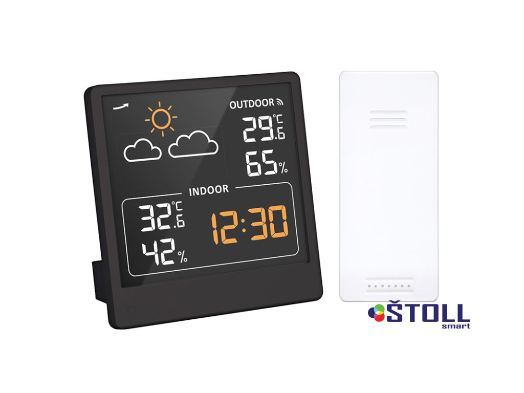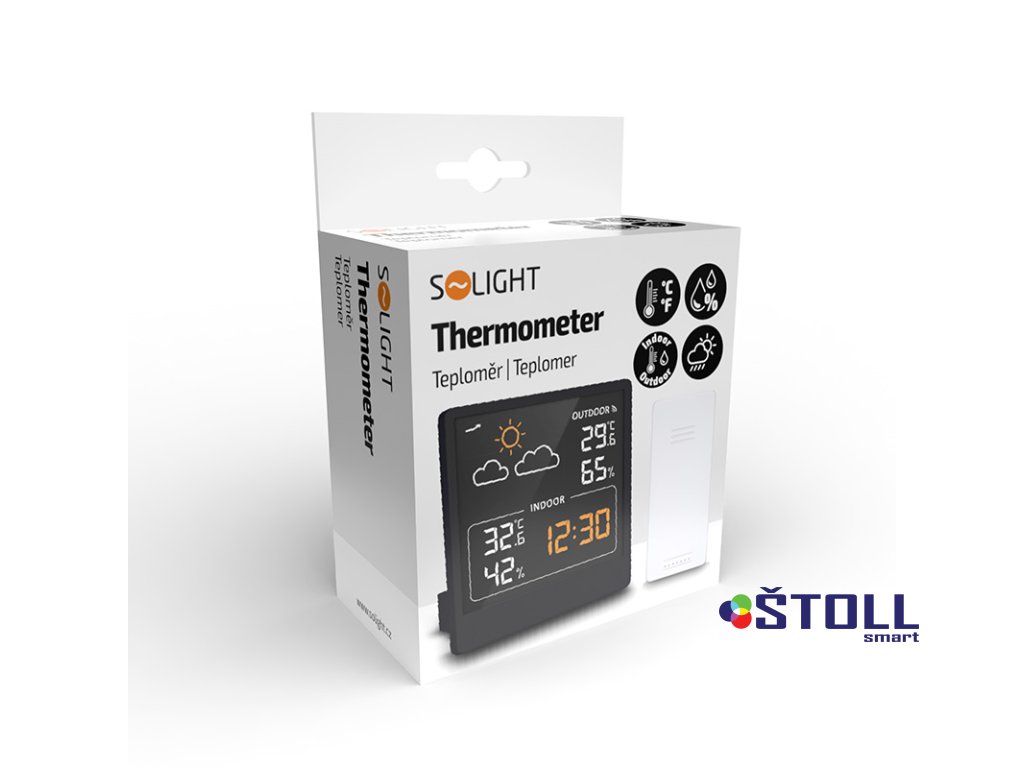 Měření vnitřní teploty od -9,9°C do +50°C a venkovní teploty od -40°C do +70°C. Měření vlhkosti (20% až 95%) pro vnitřní i venkovní prostředí. Ukládání maximálních a minimálních hodnot teploty a vlhkosti, zobrazení trendu změny tlaku a předpověď počasí na základě změn tlaku. Možnost volby jednotek teploty °C/°F. Napájení: hlavní jednotka 2× AAA baterie nebo DC5V / 2A, senzor 2× AAA baterie (není součástí balení). Barva: černá.