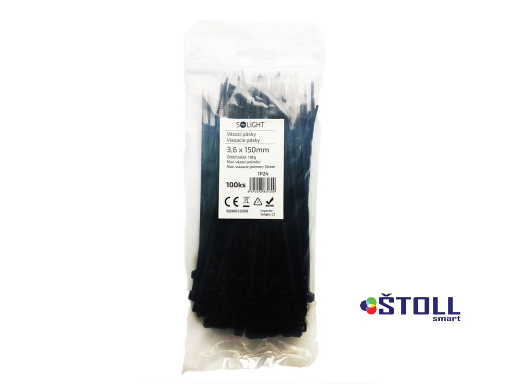 Solight vázací nylonové pásky, 3,6 x 150mm, černá, 100ks