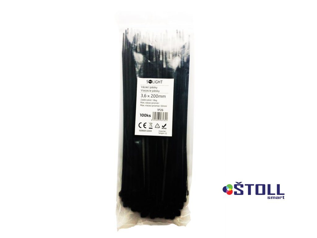 Solight vázací nylonové pásky, 3,6 x 200mm, černá, 100ks