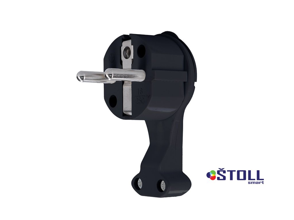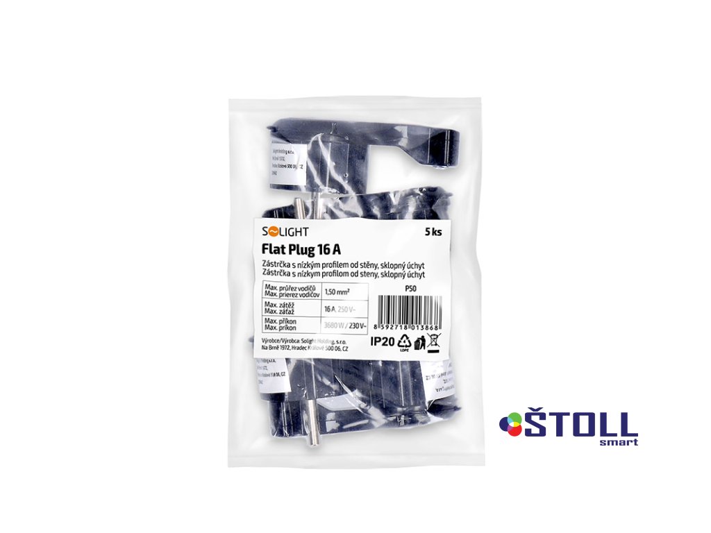 Solight zástrčka úhlová, nízký profil od stěny, IP20, černá
